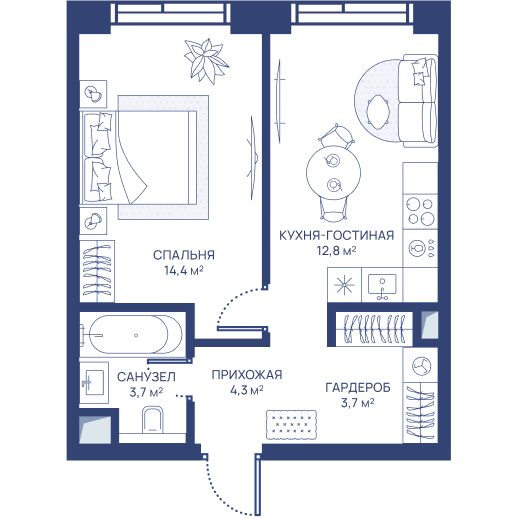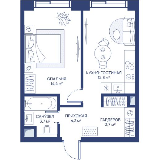 1-комнатная 37.8 м