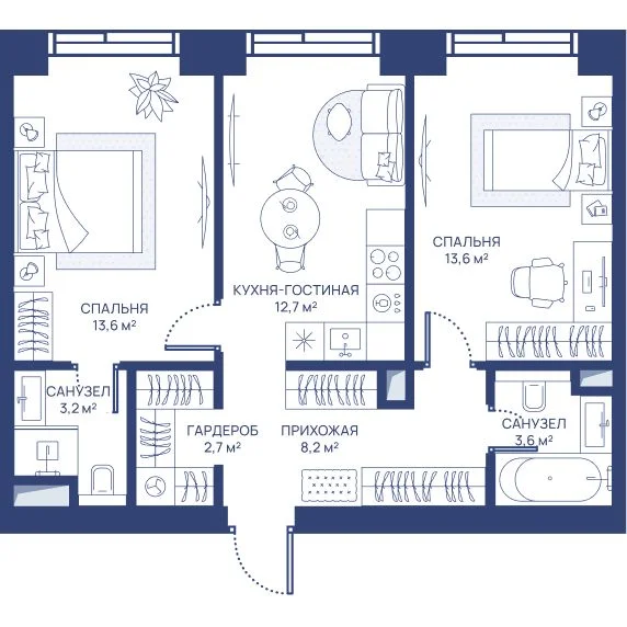 2-комнатная 56.8 м