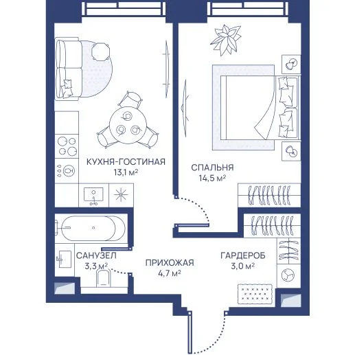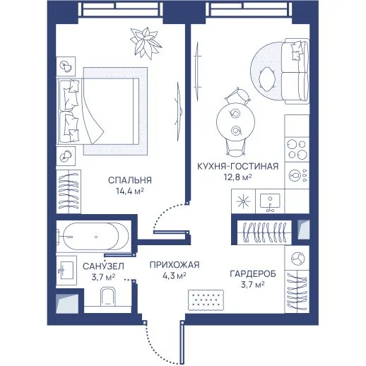 1-комнатная 42.5 м