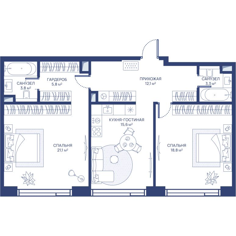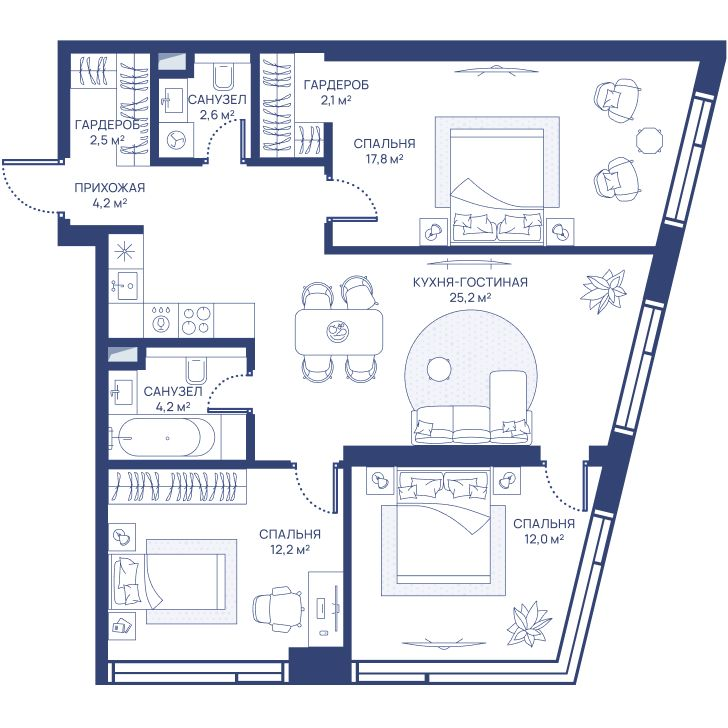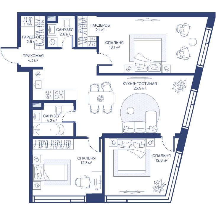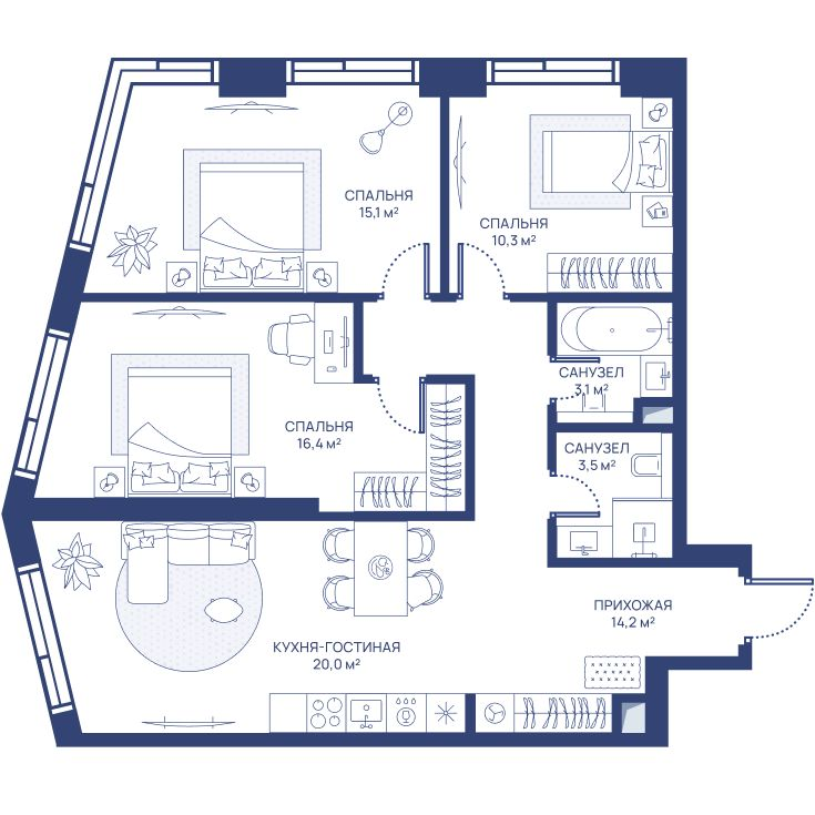 3-комнатная 83.7 м