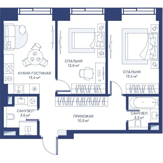 2-комнатная 56.8 м