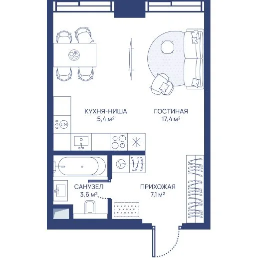 Студия 33.7 м