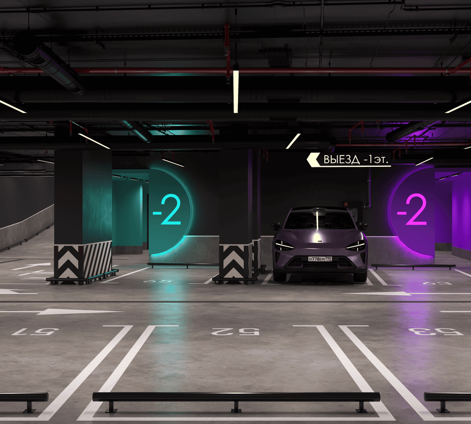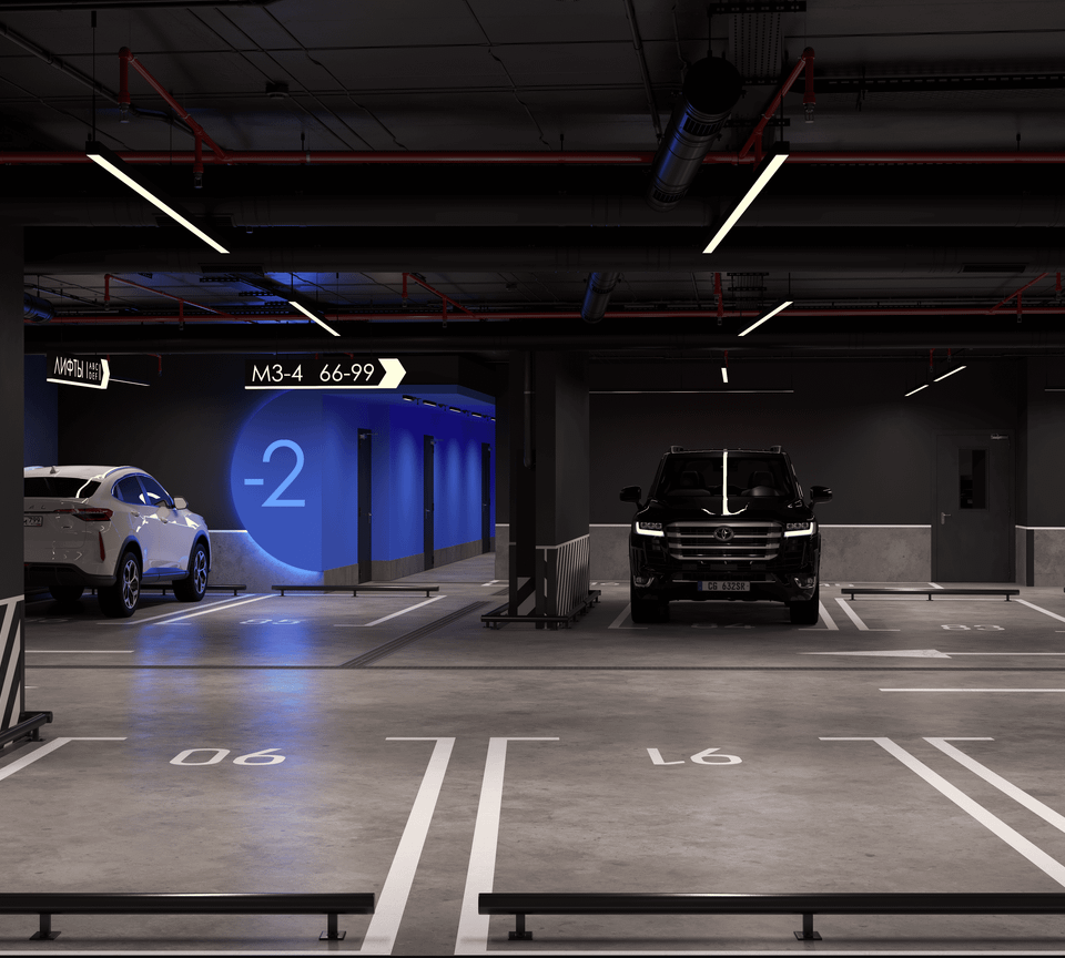 Покупка собственного машиноместа раз и навсегда решит вопрос с парковкой личного автомобиля. Целых два подземных этажа паркинга обеспечивают дополнительный комфорт и уверенность, что автомобиль находится в безопасности и защищен от непогоды.